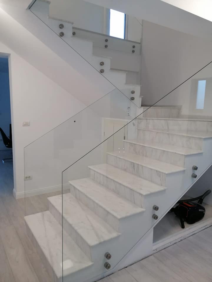 Folosim sticla securizata 8 sau 10 mm, clara, sablata sau colorata (orice culoare RAL).Pe sticla putem printa orice imagine sau sigla, pentru o nota de personalitate a proiectului.